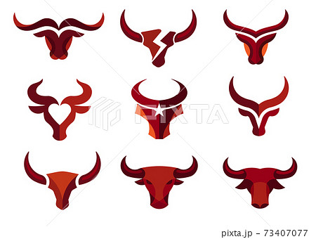 Bull Head Vector Logo Set Concept Illustration Stock Illustration 73407077 Pixta